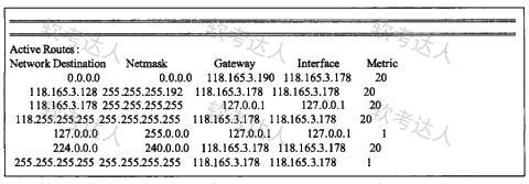 在host1的DOS命令窗口中,运行route print命令显示其路由信息,得到的结果如下图所示。