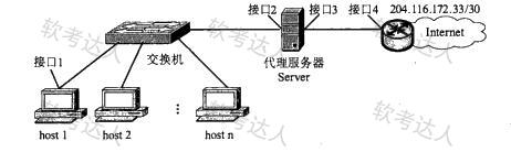某公司采用代理服务器接入Internet,网络拓扑结构如下图所示。