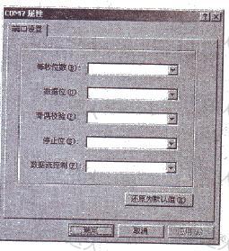 在对路由器进行首次设置时,通过Console 端口进行连接,客户机系统为Windows XP,运行的终端仿真程序为超级终端,出现如图所示的针对串口通信参数的设置,请给出正确的参数设置,以便进入路由器开始配置。