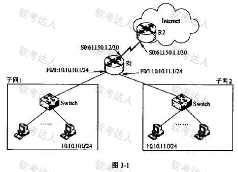 下面是路由器R1的基本配置信息,根据图3-1中拓扑信息,按照题目要求完成配置命令。