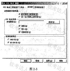 图2-3是配置FTP服务时的主目录选项卡,“本地路径”栏的信息默认为(3)。