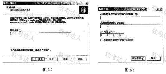 在DNS_Serverl中为Web_serverl配置域名记录时,区域名称和新建主机分别如图2-2和图2-3所示。