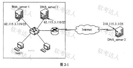 某网络拓扑结构如图2-1所示。其中的DNS_Serverl和DNS_Server2分别安装有Windows Server 2003并启用了DNS服务,DNS_Server2作为DNS_Serverl的转发域名服务器。Web_serverl是一个域名为www.softwaretest.com的Web站点。