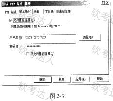 图2-3是该FTP服务器的安全帐号配置过程,FTP客户端进行匿名登录时,默认的用户名是(9)。
