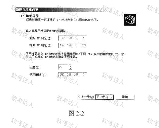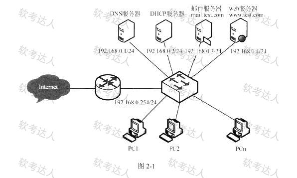某企业网络拓扑结构如图2-1所示,通过WindowsServer2003系统搭建了Web、DNS、DHCP和邮件服务器(为内网用户提供服务),其中DHCP服务器分配的地址范围如图2-2所示。