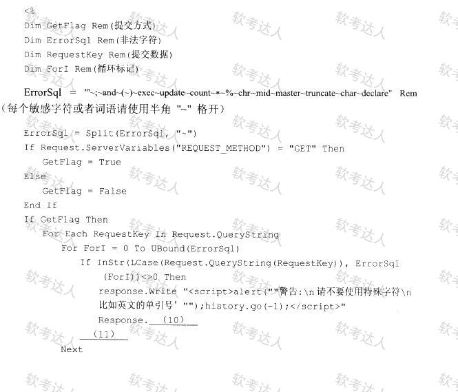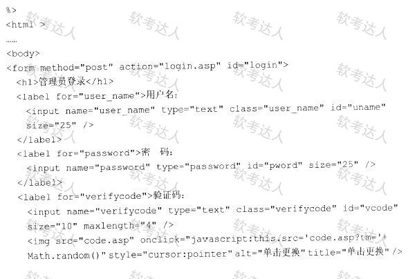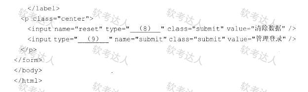 以下是该后台管理登录页面login.asP的部分代码,请仔细阅读该段代码,根据图4-1将(1)~(9)的空缺代码补齐。