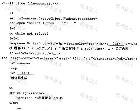 以下是该留言板页面部分代码,请根据题目说明完成该程序,将答案填写在答题纸的对应位置。