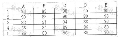 在Excel 2003中,A1到E5单元格中的值如下图所示,若在A6单元格中输入函数“=MAX(A1:E5)-MIN(A1:E5)/2”,按回车键后,则A6单元格中的值为( );若在A7单元格输入中位数函数“=MEDIAN(A1:E5)”,按回车键后,则A7单元格中的值为( );若在A8单元格输入函数“=COUNTIF(A1:E5,">=85")-COUNTIF(A1:E5,">90")",按回车键后,则A8单元格中的值为( )。