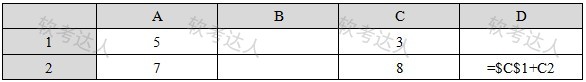 如将D2单元格中的公式复制到B2单元格中,则B2单元格的值为( )。