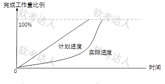 小张在完成了某个信息处理项目后,在总结汇报工作时将该项目的计划进度与实际 进度画出了如下两条曲线: