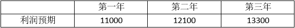 某项目的利润预期(单位:元)如下表所示,贴现率为10%,则第三年结束时利润总额的净现值约为( )元。