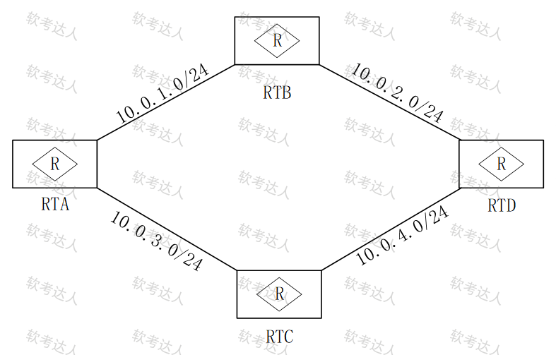 下图所示的网络中,所有路由器的接口均运行OSPF协议,则整个网络中选举()个DR。