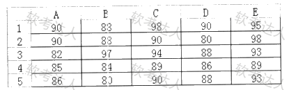 在Excel 2003中,A1到E5单元格中的值如下图所示,若在A6单元格中输入函数“=MAX(A1:E5)-MIN(Al:E5)/2”,按回车键后,则A6单元格中的值为( );若在A7单元格输入中位数函数“=MEDIAN(A1:E5)”,按回车键后,则A7单元格中的值为(/);若在A8单元格输入函数“=COUNTIF(A1:E5,”>=85")-COUNTIF(A1:E5,">90")",按回车键后,则A8单元格中的值为(/)。