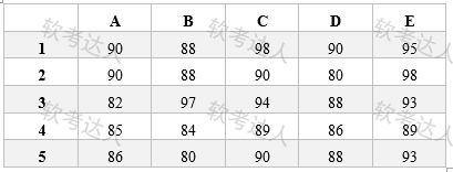 在Excel 2003中,A1到E5单元格中的值如下图所示,若在A6单元格中输入函数“=MAX (A1:E5) -MIN(A1:E5) /2”,按回车键后,则A6单元格中的值为( );若在A7单元格输入中位数函数“=MEDIAN(A1:E5) ”,按回车键后,则A7单元格中的值为( );若在A8单元格输入函数"=COUNTIF(A1:E5,">=85")-COUNTIF(A1:E5,">90")", 按回车键后,则A8单元格中的值为( )。