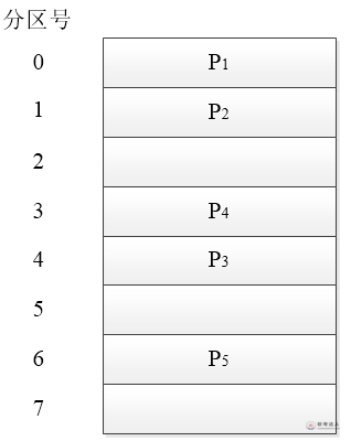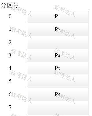 假设内存管理采用可变式分区分配方案,系统中有五个进程P1、P2、P3、P4、P5,且某一时刻内存使用情况如下图所示(图中空白处表示未使用分区)。此时,若 P5 进程运行完并释放其占有的空间,则释放后系统的空闲区数应( )。