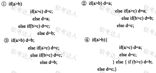 三目运算符表达式“d=a>b?(a>c?a:c):(b>c?b:c);”等价于下列①、②、③、④四组程序的( )组解释。