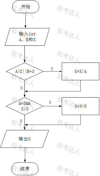 用白盒测试方法对如下图所示的流程图进行测试。若要满足分支覆盖,则至少需要( )个测试用例,正确的测试用例对是( )(测试用例的格式为(A,B,X;X))。