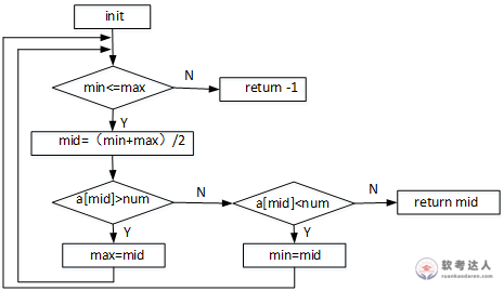 下图所示的逻辑流实现折半查找功能,最少需要( )个测试用例可以覆盖所有的可能路径。