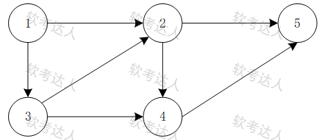 对于如下所示的有向图,其邻接矩阵是一个( )的矩阵。采用邻接链表存储时,顶点1的表结点个数为2,顶点5的表结点个数为0,顶点2和3的表结点个数分別为( )。
