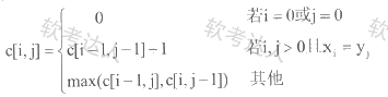 求解两个长度为n的序列X和Y的一个最长公共序列(如序列ABCBDAB和BDCABA的一个最长公共子序列为BCBA)可以采用多种计算方法。如可以采用蛮力法,对X的每一个子序列,判断其是否也是Y的子序列,最后求出最长的即可,该方法的时间复杂度为(/)。经分析发现该问题具有最优子序列,可以定义序列程度分别为i和j的两个序列X和Y的最长公共子序列的长度为C[I,j],如下式所示。