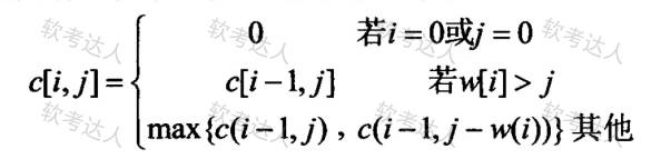 其中c(i,j)表示i个物品、容量为j的0-1背包问题的最大装包价值,最终要求解c(n,W)。