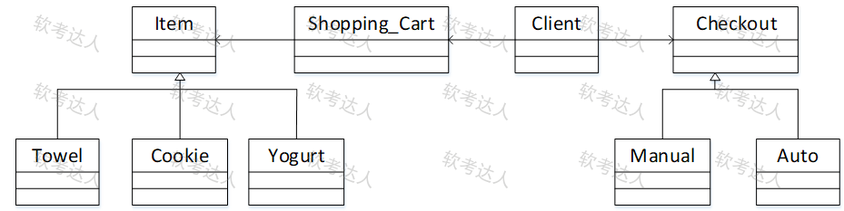 假设现在要创建一个简单的超市销售系统,顾客将毛巾、饼干、酸奶等物品(Item)加入购物车(Shopping_Cart),在收银台(Checkout)人工(Manual)或自动(Auto)地将购物车中每个物品的价格汇总到总价格后结账。这一业务需求的类图(方法略)设计如下图所示,采用了( )模式。其中( )定义以一个Checkout对象为参数的accept操作,由子类实现此accept操作。此模式为( ),适用于( )。
