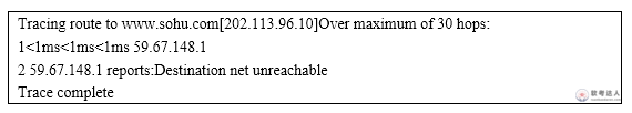 一台主机的浏览器无法访问域名为www.sohu.com的网站,并且在这台计算机执行tracert命令时有如下信息: