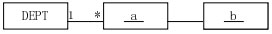 设有职工EMP(职工号, 姓名, 性别, 部门号,职务,进单位时间, 电话),职务 JOB(职务,月薪)和部门DEPT(部门号, 部门名称, 部门电话, 负责人)实体集。一个职务可以由多个职工担任,但一个职工只能担任一个职务,并属于一个部门,部门负责人是一个职工。下图所示的a、b处的实体名分别为();图中a、b之间为()联系。