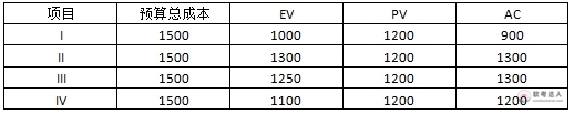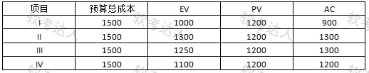 项目Ⅰ、Ⅱ、Ⅲ、Ⅳ的工期都是三年,在第二年末其挣值分析数据如下表所示。 按此趋势,项目( )应最早完工。