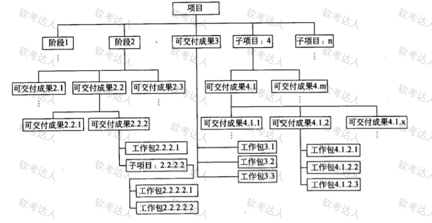 图中的工作包是WBS中较大的单元,可向下继续分解