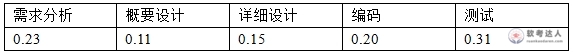 某软件工程项目各开发阶段工作量的比例如下表所示: