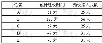 某市数字城市项目主要包括 A、B、C、D、E 等五项任务,且五项任务可同时开展。各项任务的预计建设时间以及人力投入如下表所示。