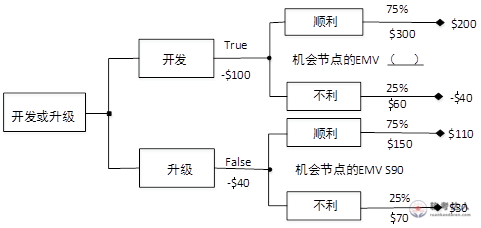 决策树分析法通常用决策树图表进行分析,根据下表的决策树分析法计算,图中机会节点的预期收益EMV分别是$90和$( )(单位:万元)。