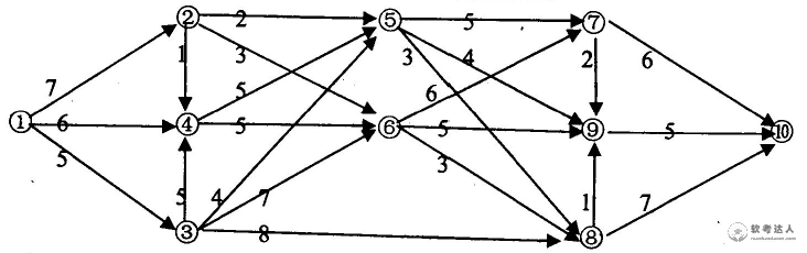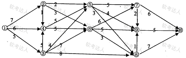 某工程的进度计划网络图如下,其中包含了①~⑩10个结点,结点之间的箭线表示作业及其进度方向,箭线旁标注了作业所需的时间(单位:周)。设起始结点①的时间为0,则结点⑤的最早时间和最迟时间分别为( )周。
