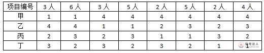 某部门聘请了30位专家评选最佳项目,甲、乙、丙、丁四个项目申报参选。各位专家经过仔细考察后都在心中确定了各自对这几个项目的排名顺序,如下表: