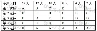 例如,有18位专家对项目的优选排序都是ADECB,依次类推。