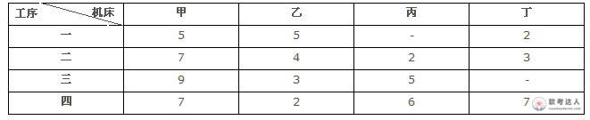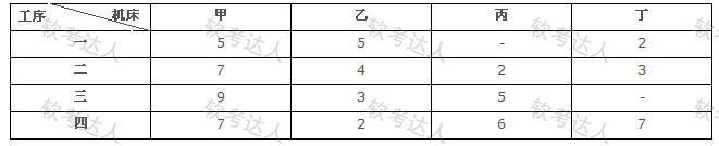 假设每台机床只能完成一道工序。现有四道工序需要分配到四台机床上,分配成本(以元计)如下表所示。由于工艺要求,工序一不能分配到机床丙上,工序三又不能分配到机床丁上。成本最低的分配方案中,其成本是( )。