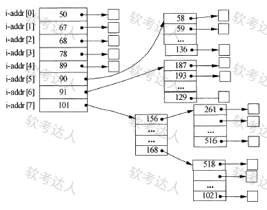 假设文件系统采用索引节点管理,且索引节点有8个地址项iaddr[0]〜iaddr[7],每个地址项大小为4B,iaddr[0]〜iaddr[4]采用直接地址索弓丨,iaddr[5]和iaddr[6]采用一级间接地址索引,iaddr[7]采用二级间接地址索引。假设磁盘索引块和磁盘数据块大小均为1KB字节,文件Filel的索引节点如下图所示。若用户访问文件Filel中逻辑块号为5和261的信息,则对应的物理块号分别为( ) ;101号物理块存放的是(/)。