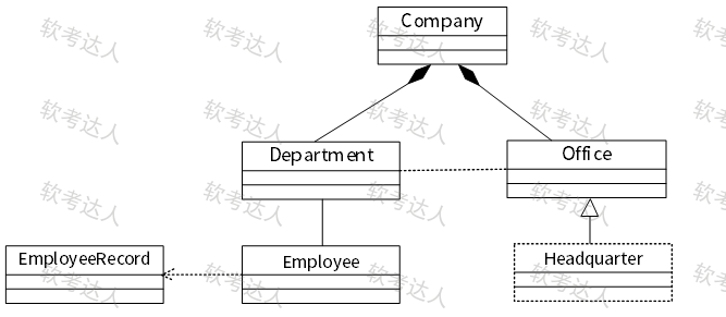 在软件系统分析与设计中,类图用于对系统的静态设计视图建模,其主要应用场合不包括( )。下列类图中,Company和Department的关系为( ),Employee和EmployeeRecord的关系为( ),在代码实现中,它们之间关系描述不正确的是( )。