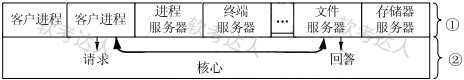 微内核的操作系统(OS)结构如下图所示,图中①和②分别工作在( )方式下,与传统的 OS 结构模式相比,采用微内核的 OS 结构模式的优点是提高了系统的灵活性、可扩充性, ( ) 。