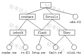 若某文件系统的目录结构如下图所示,假设用户要访问文件 fault.Swf,且当前工作目录为 swshare,则该文件的全文件名为( )。