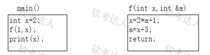 函数main()、f()的定义如下所示。调用函数f()时,第一个参数采用传值(call by value)方式,第二个参数采用传引用(call by reference )方式,main()执行后输出的值为( )。