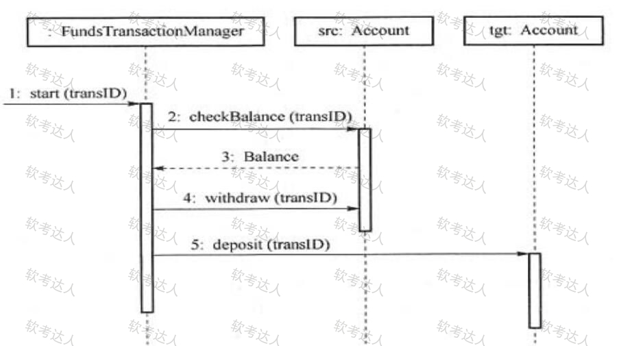 UML序列图是业务场景的图形化表示,描述了以( )顺序组织的对象之间的交互活动。某系统中的一个UML序列图如下图所示,( )表示返回消息,Accoun t类必须实现的方法有( )。