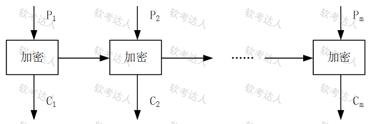 分组密码常用的工作模式包括:电码本模式(ECB模式)、密码反馈模式(CFB模式),密码分组链接模式(CBC模式),输出反馈模式(OFB模式)。下图描述的是( )模式(图中P