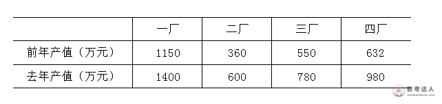四个铜厂前年的产值、去年的产值如下表: