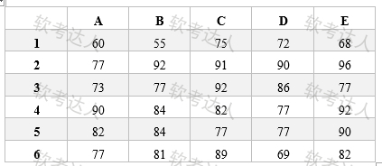 在Excel 2003中,A1到E6单元格的值如下图所示,若在A7单元格中输入计 算众数的函数“=MODE (A1: E6)”,按回车键后,则A7单元格显示的值为( )。