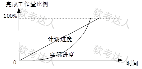 小张承担了某信息处理项目,在完成之日向领导做了汇报,将计划进度与实际进度画出了如下两条曲线: