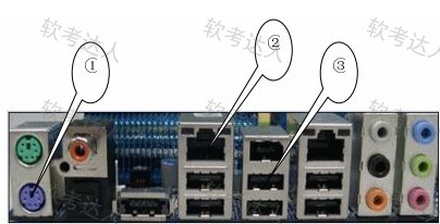 下图主板接口中,①处是( ),②处可以接的设备是( ),③处可以接的设备是( )。