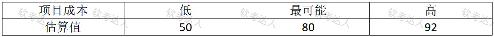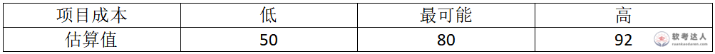 某项目成本估算区间如图所示(单位:万元),则在84万元内完成项目的可能性为:( )。