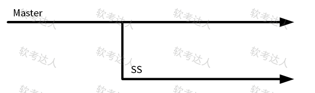 某软件的配置库结构如下图,产品需求在Master上实现,软件整体完成后拉出SS分支修复严重问题并发布最终软件。则SS为:(59)。